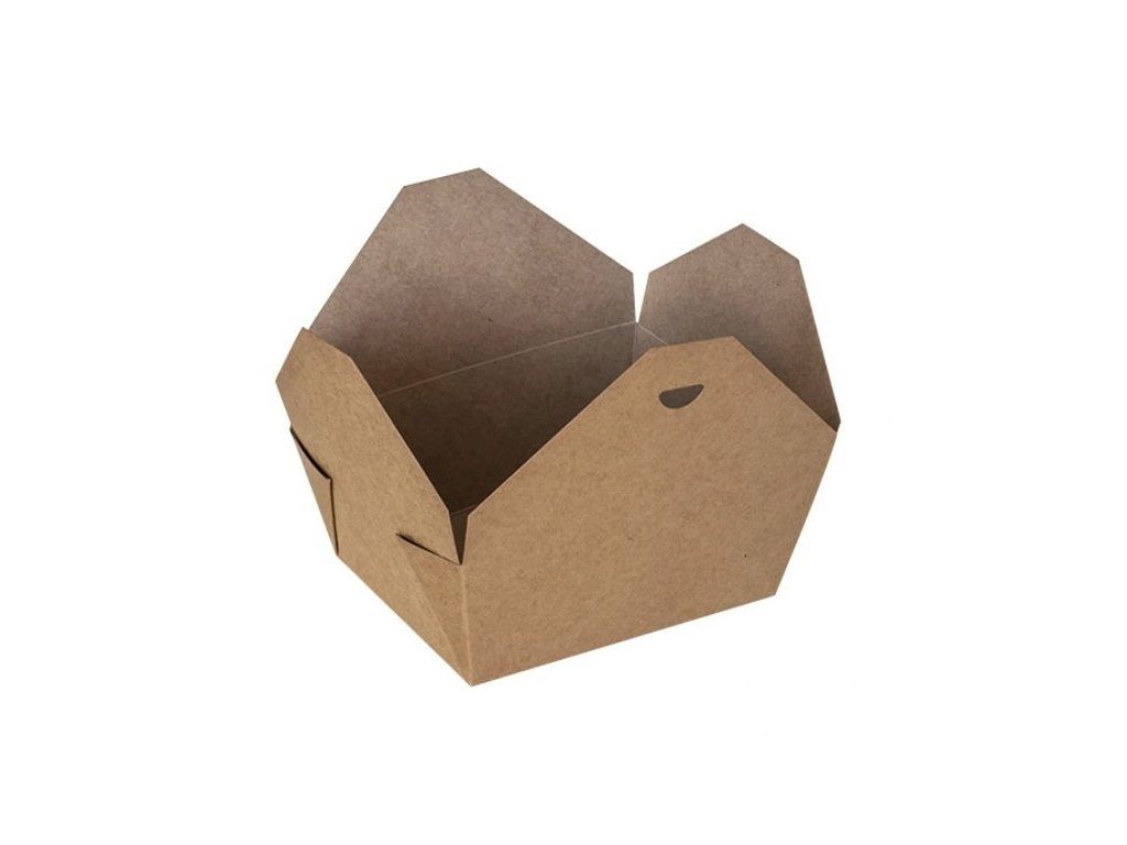 Lunchbox aus Papier (Kraft) mit fettdichter Oberflächenbehandlung.